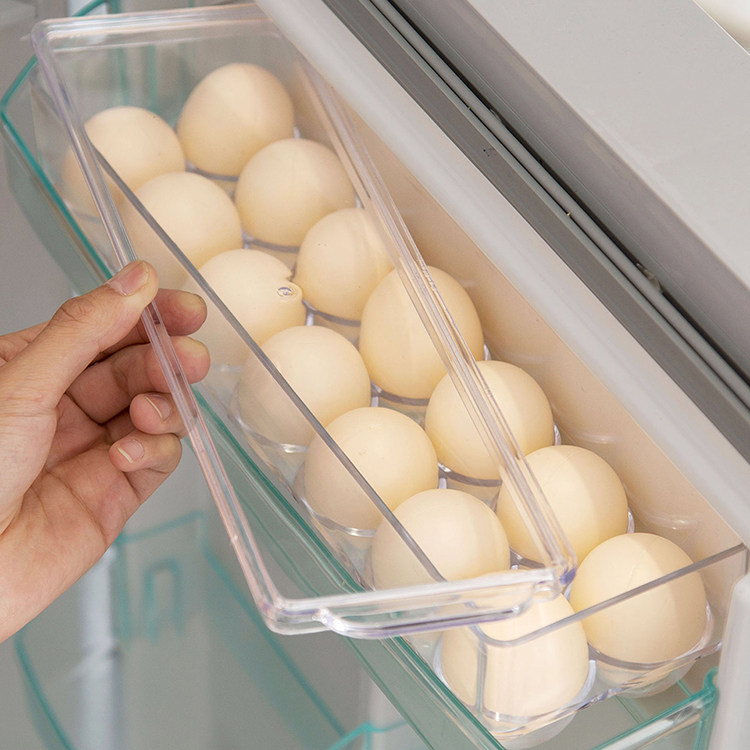 鸡蛋也需要冷藏在冰箱内,进行长久的保鲜,尤其是夏季的时候。鸡蛋放入冰箱,为了避免磕碰,可以选择这种细长的收纳盒,刚好容纳在开门的卡槽内,有序的摆放鸡蛋不仅节省了空间,同时也能方便我们日常拿取,是鸡蛋保鲜的一种好方式。