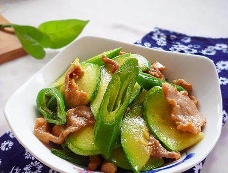 尖椒倭瓜炒肉片的做法: