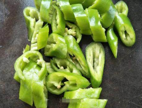 制作过程:第一步,嫩倭瓜清洗干净后,带皮切成稍微薄点的片,尖椒洗净切成段;