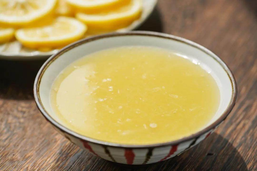 1、4个柠檬洗净,1个柠檬切片去籽,其他三个柠檬挤成汁备用。