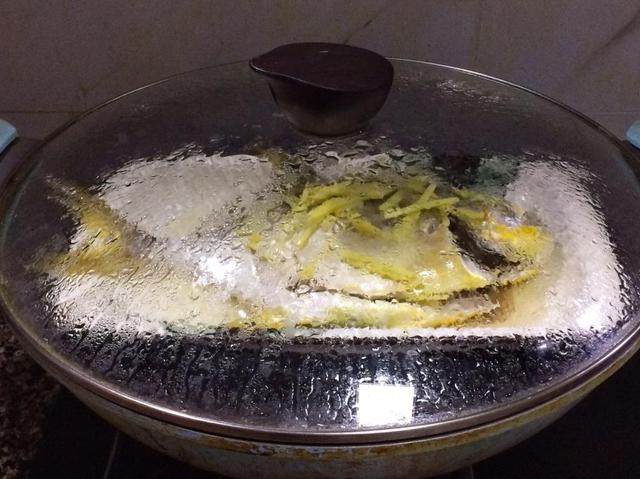 第二步:盘子底部铺上姜片,然后放上鲳鱼,鲳鱼身上和鱼肚子里分别放上姜丝,水开之后上锅蒸10分钟左右即可。