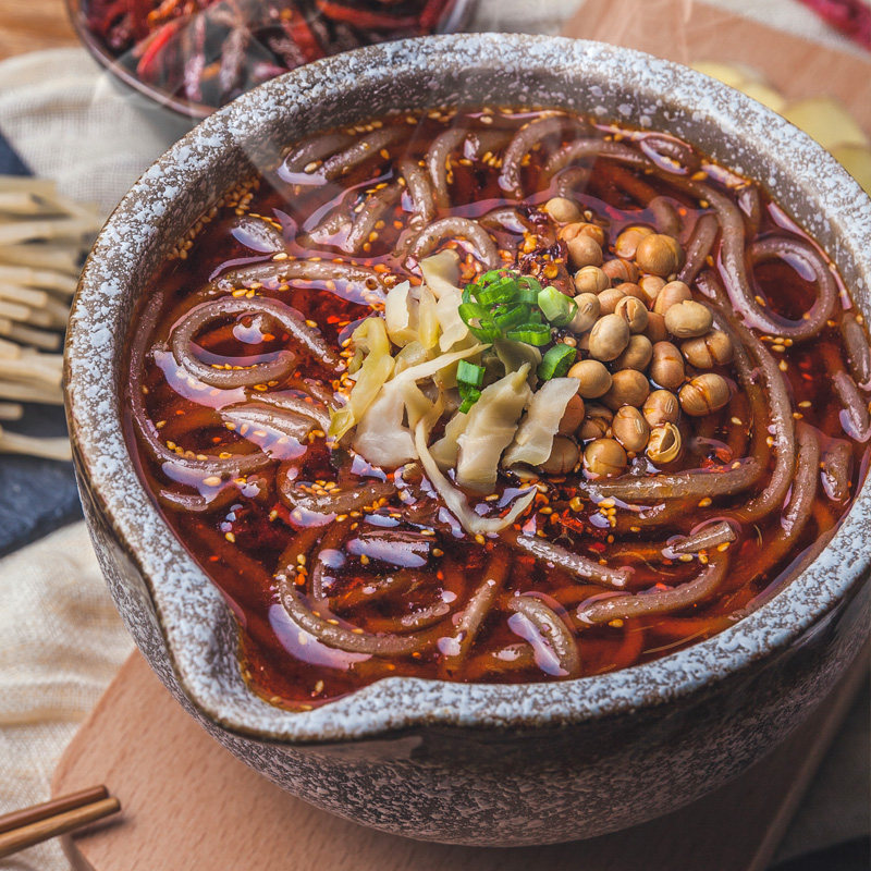 酸辣粉吃的时候一定要少放汤才够味哦,最好加些青菜之类的丰富口感,里面的黄豆是比较有韧劲的,不是脆的口感,我还是比较喜欢那种脆豌豆。