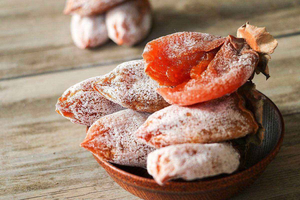 柿子还可以做成柿饼,外皮柔韧,果肉甜糯十分的好吃。柿霜饼和柿霜能润肺生津,祛痰镇咳,压胃热,解酒,疗口疮。
