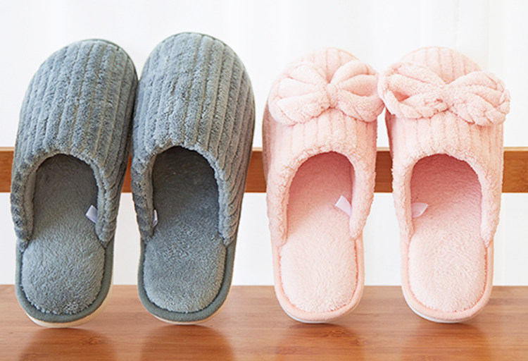 用简洁大方,可爱甜美来形容这款家居鞋,男款圆头深型半包头,圆润鞋头美观大方,穿脱方便。女款鞋面料的大蝴蝶结,丰富了鞋款层次感,甜美俏皮不显单调,更好的区别了男女款的不同。厚实毛绒的鞋垫,脚感柔软温馨,为宅家生活增添一些俏皮,轻松。