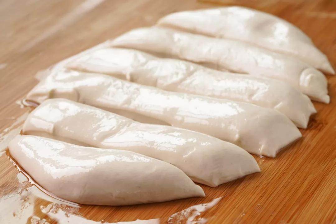 *用筷子压一下是为了之后可以轻易地从中间撕开分成两根。