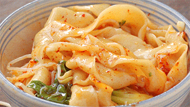 我爸做的油泼面真的太好吃了,有嚼劲,配料也正合我意。夏天本就是吃油泼面最好的时机,吃得边流汗边欲罢不能。吸溜时中毒一样的想起“你看这个面它又长又宽~”,然后反省自己,为什么从来都没在日食记做过。