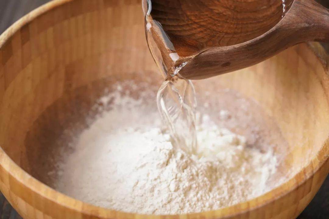 1、400g中筋面粉加5g盐混匀,慢慢加入200-210ml温水,揉搓成团后包层保鲜膜放置一旁醒发10分钟,再反复揉至面团光滑起筋。