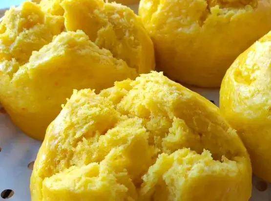 15分钟后,馒头坯就发好了。蒸锅里倒水,水开后,把馒头坯放进去,大火蒸20分钟,关火后焖5分钟。蒸馒头的时候一定要开水下锅。馒头蒸好后,取出,稍微放凉后脱模,这道南瓜开花馒头就算做好了。由于这道馒头是用低筋面粉做的,口感细腻跟吃蛋糕一样,特别的蓬松香软,还伴有浓浓的南瓜清香,特别好吃。