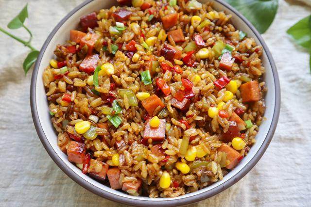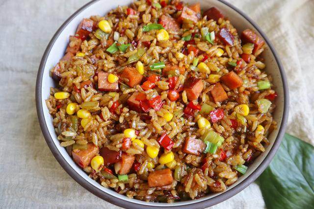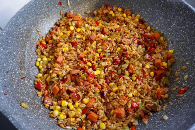 配合金黄的玉米和红红绿绿的辣椒,炒出来的米饭颜色分外好看!一看就很有食欲!