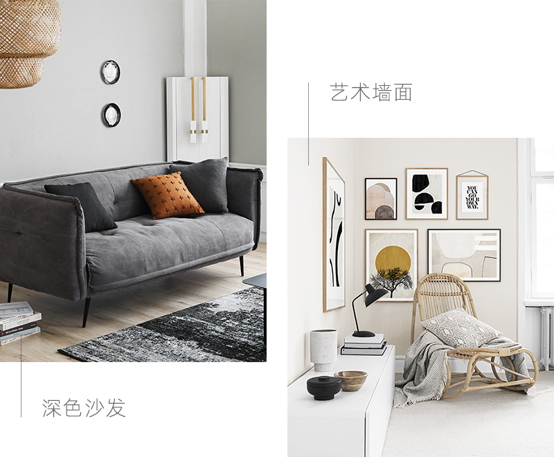当然,口味正宗,滋味丰富的奶茶味客厅,光有Q弹担当自然不行,为客厅注入奶茶般丝滑的feel,善用奶茶色组合成趣的艺术装饰画,就很有代表性。