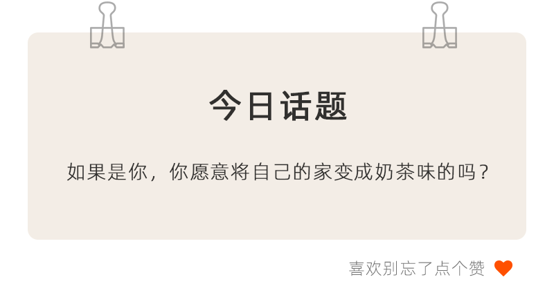 热衷于甜蜜感为生活带来的小确幸,那么如果是你,会不会将家里变成奶茶味滴?评论区参与话题讨论,每个热爱奶茶味的小仙女,相信都能通过这样的方式找到知己!