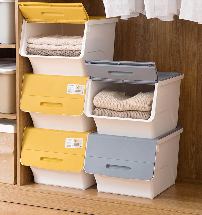 收纳箱采用优质环保材质,外形美观韧性好,承重力强,经久耐用,强承重力,不一样的收纳箱,叠加稳固不易掉落,更安全承重性好,牢固不变形。底部滑轮设计,叠加放置省时省力,还具有卡扣设计,拿取便利安全稳固,防止物品侧翻掉落。