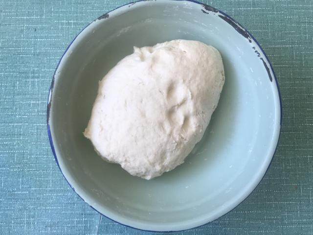 4、准备好的面粉用冷水和成偏软一点的面团,密封好醒10分钟;