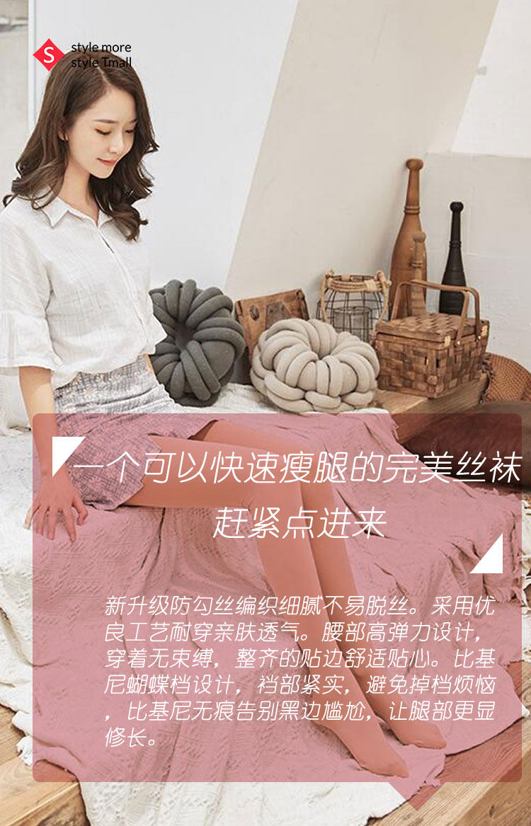 脚尖二次弹力加固高密度针织,牢固耐穿平整不硌脚。甄选优质防勾丝天鹅绒,轻薄透气,很适合夏天穿着。精细四路苞纱编织,能够有效防止勾丝的情况,同时还能抗紫外线。弹性好更耐穿,服帖舒适又能够增添腿部修长立体与玲珑曲线。