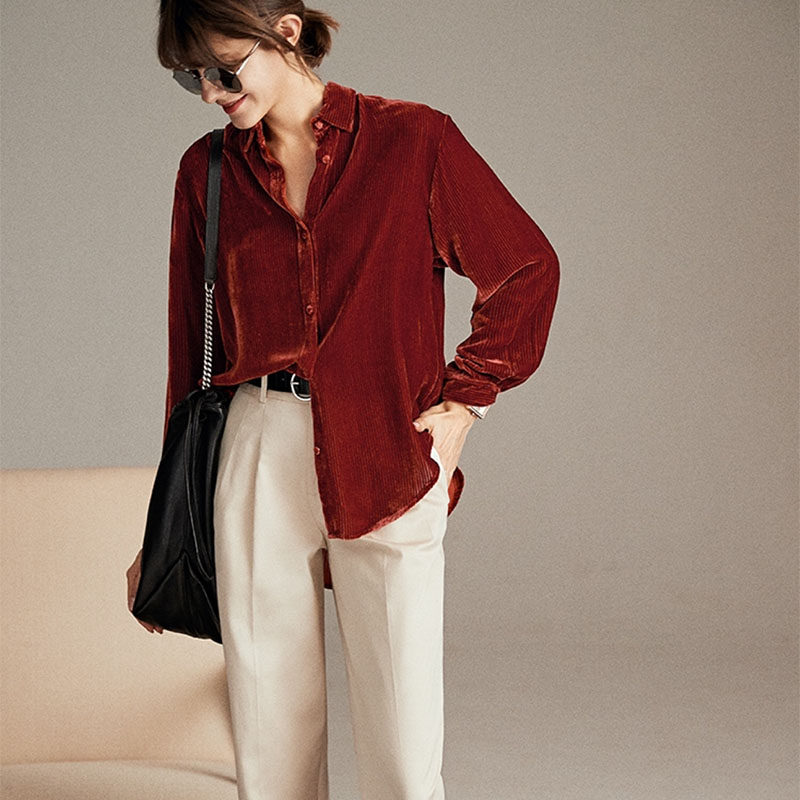 真丝衬衫不仅柔顺,还可以帮助皮肤维持表面脂膜的新城代谢,在极易干燥的秋季帮助我们保持皮肤的滋润、光滑。蚕丝中的丝蛋白含有色氨酸、酪氨酸能吸收紫外线,因此真丝衬衫具有良好的抗紫外线功能,保护我们的皮肤。在这个秋季,购买一件真丝衬衫,不需要额外购买下装,只需要搭配一条普普通通的长裙,一个优雅淑女look就搭配好啦。