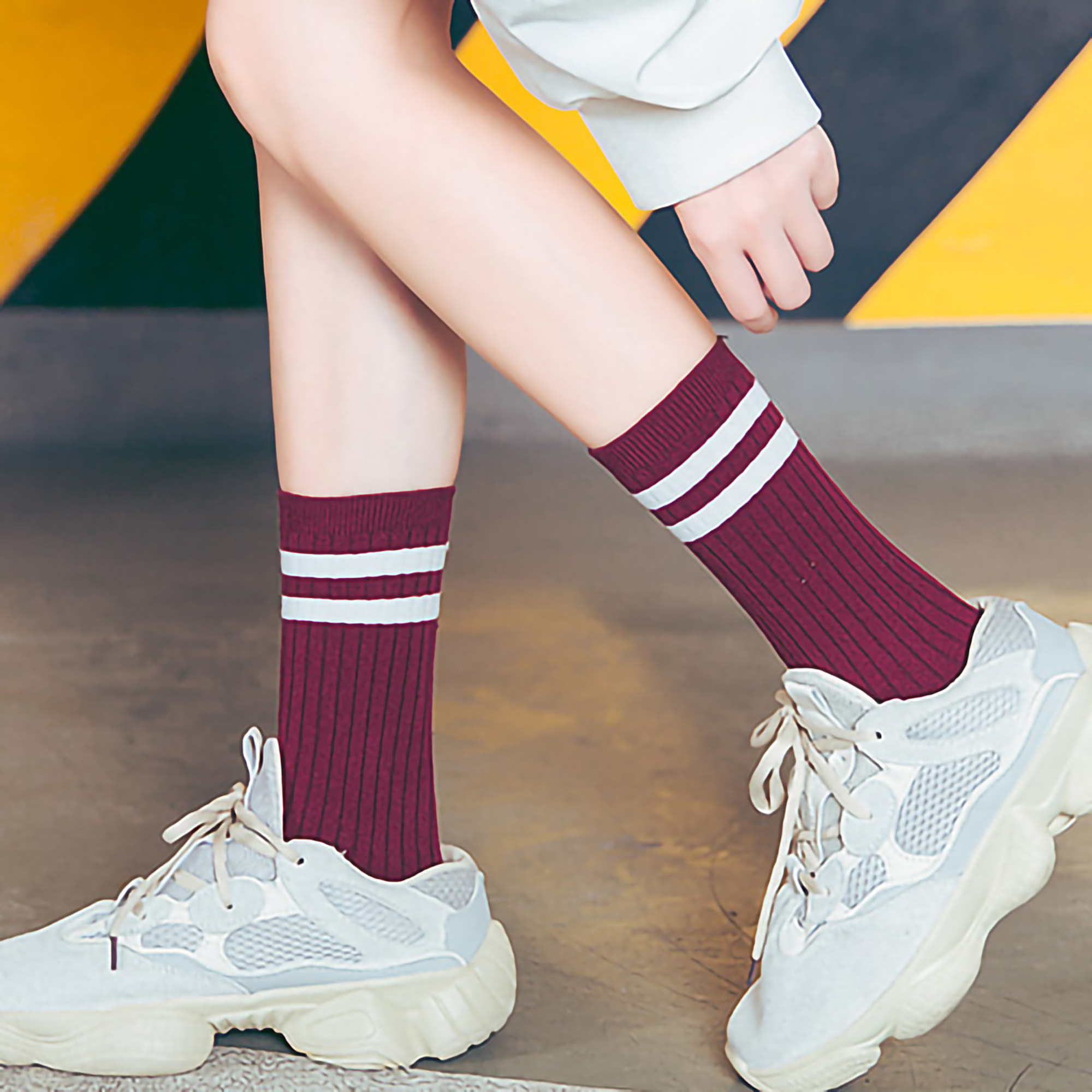 这是一款适合日常生活的中筒袜,有三种颜色可供选择,标准版型,这种长度的袜子曾一度成为街头文化的重要元素,各路青春运动型少年少女都喜欢穿着球鞋板鞋搭配上这样的一双中筒袜玩着滑板,或者穿着它在操场上,在篮球场上自在的奔跑。青春少年感十足。