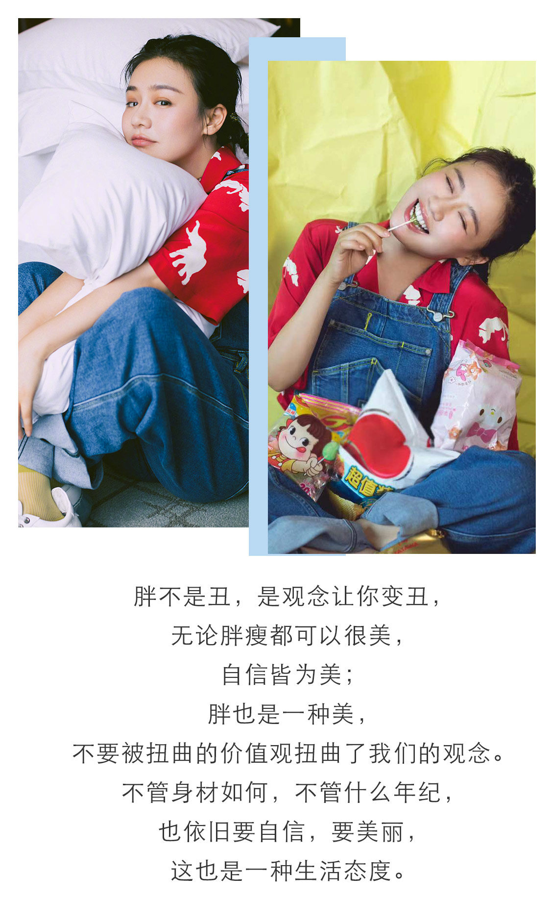 运动风的卫衣宽松藏肉,自带随性休闲的效果,微胖的女生穿透露出的慵懒气息,反而在时尚达人中自成一派,是与世无争的软萌少女没错了。