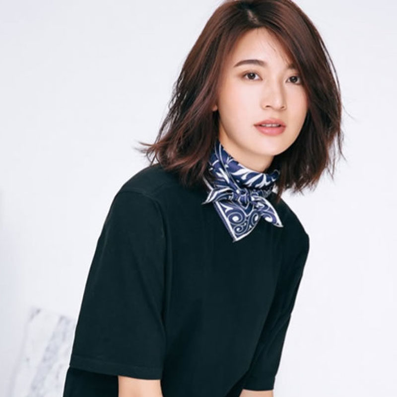 蚕丝质地的小方巾,一般还会加上彩色的印花图案作为点缀,可以让日常的搭配有眼前一亮的效果,在微微凉的天气,小方巾还能呵护自己的颈部。