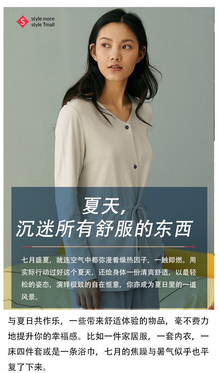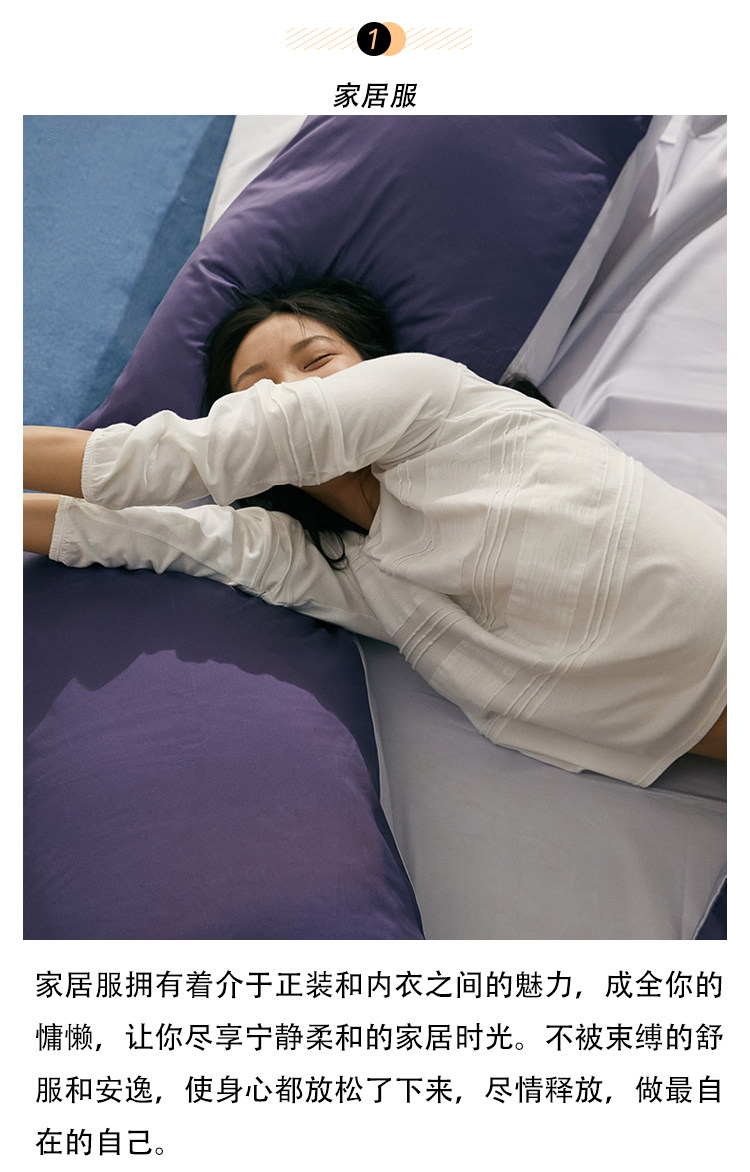 清新文艺的家居服,经典圆领设计,修饰脸型显脸小,精致的透明贴边,丰富了视觉层次感,打条镶嵌,凸显整体的细节感。甄选优质面料,既有棉的柔软亲肤,又有莫代尔的顺滑垂坠,良好的排汗透气性更是让你舒爽适意。