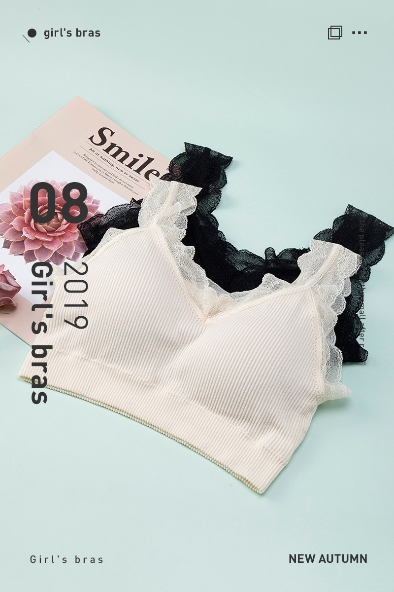 舒适无钢圈,性感蕾丝肩带,自然上托胸部形成集中挺拔的效果,同时杯面柔软舒适,富有弹性,点缀蕾丝设计,性感妩媚。