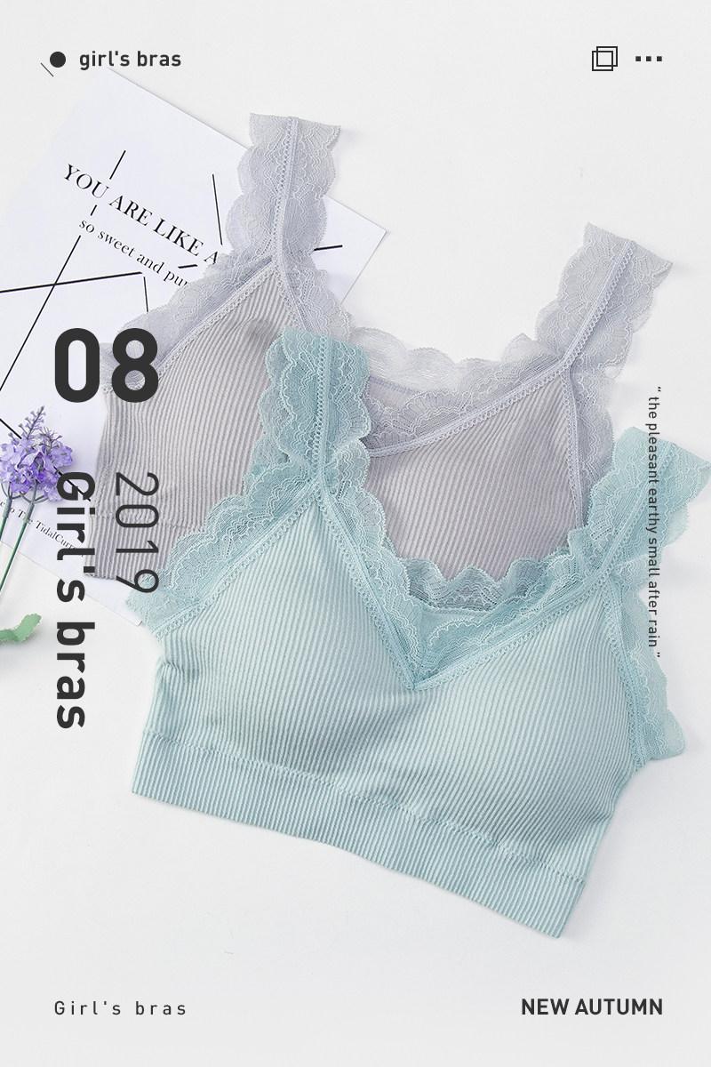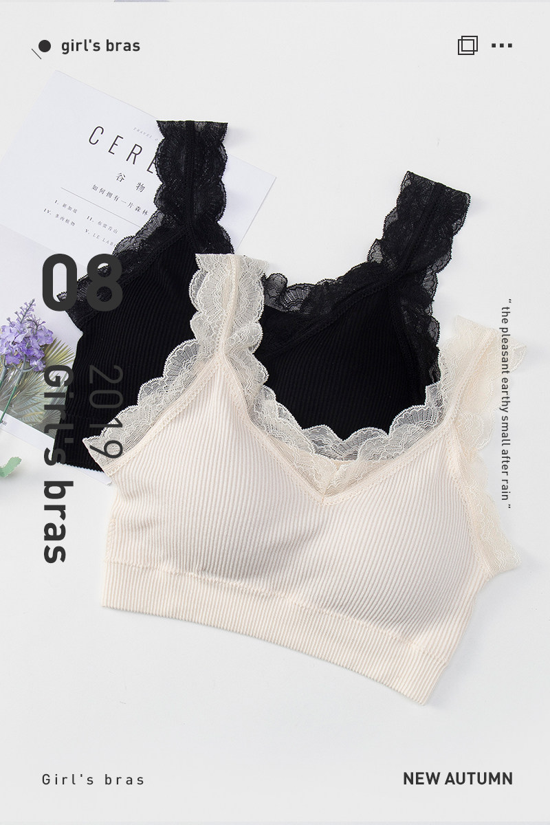 胸口V型的设计,加上蕾丝贴边,既防走光又不怕外露,不管怎么运动,内衣都不会上蹿下跳,安全感满分。