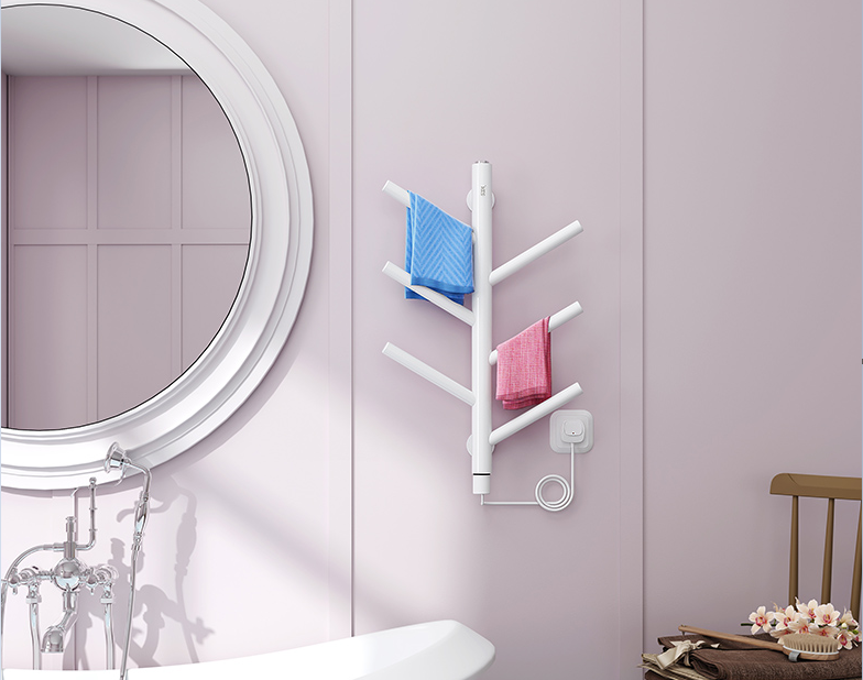 艾芬达电热毛巾架,看似是小小的一个毛巾架而已,树枝的造型,小巧而精致的款式,挂在卫生间,一点都不占地方,还很容易安装,也很结实牢固。通过水来加热毛巾架,实现烘干毛巾的效果。架体内加注了导热液,内置加热棒通电加热后,通过导热液热传递到架体表面,就可以起到抗菌和烘干的作用了。