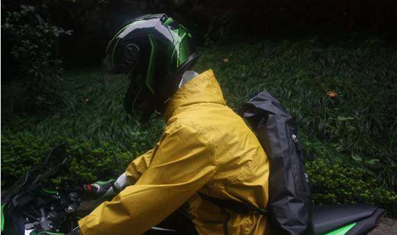 3.防水背包也是在雨天骑行中不可忽视的装备,因为摩托车本质就没有小的储物空间来存放随身的一些小东西,(例如手机、钱包等),所以车友们在骑行中大多数会选择背包来存放自己的一些随身物品。但是在降雨的时候我们就需要一款带有防水的背包。