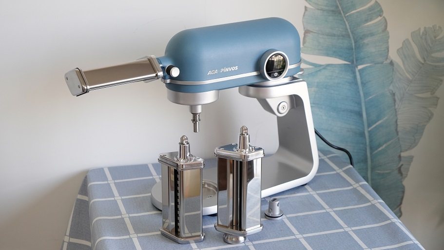 ACA高端厨师机全机身采用压铸铝制作而成,哑光蓝和银灰色喷漆焕发出淡淡光泽,整体look低调轻奢,品质感十足。800w高品质直流电机动力强,扭力大,可以媲美1500w的交流电机,且使用寿命长,出膜速度比1500w交流电机快3倍。弓字设计提升稳定性,揉面时候没有震感。