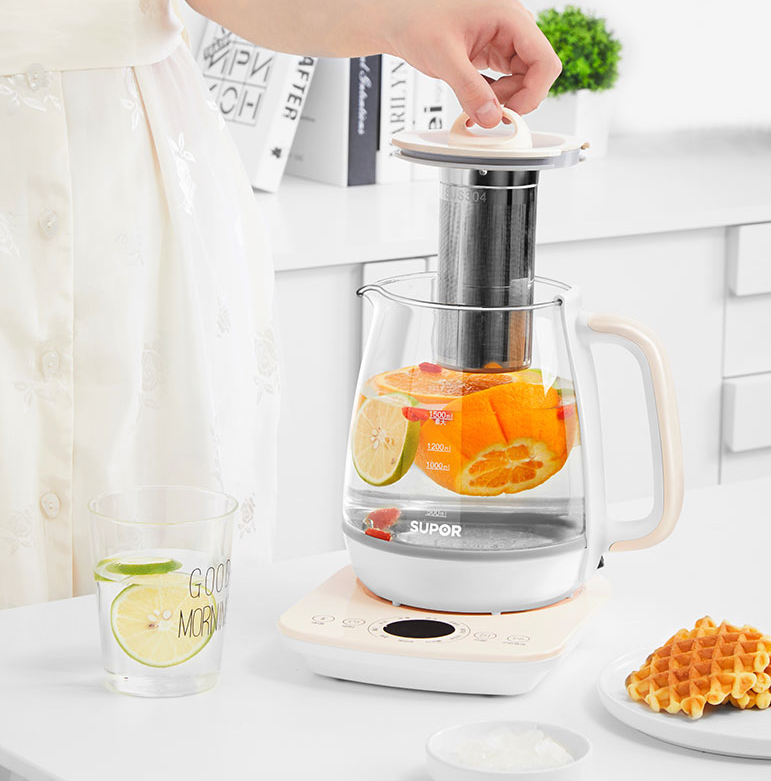 多段控温功率,1.5小时唤醒食材活力,9种不同养生方案,体验未曾体验的美好;可拆卸304不锈钢茶篮,轻松过滤茶渣,清洗更方便,提升使用舒适感。