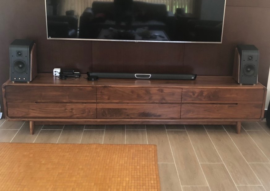 此产品拥有纤薄的外观设计,能灵活摆放,节省储物空间,轻松搭配融入到各种家居装修风格之中。而且,其采用了黑色,端庄大气,简约时尚。另外,它还有金属的网状面罩,有效提升客厅空间品位,给生活增添一份好心情。