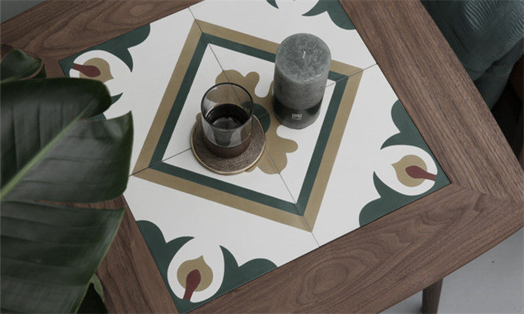 回归生态,慢生活的设计感,铸就这款简约风的小茶几。跨材质的设计风格,将黑胡桃实木材质搭配具有南洋风情的手工水泥花砖,视觉碰撞的设计凸显别样气质。水泥花砖展现质朴的手工工艺感,展现生活气息。黑胡桃木的原色装饰,低调更富有气质感。