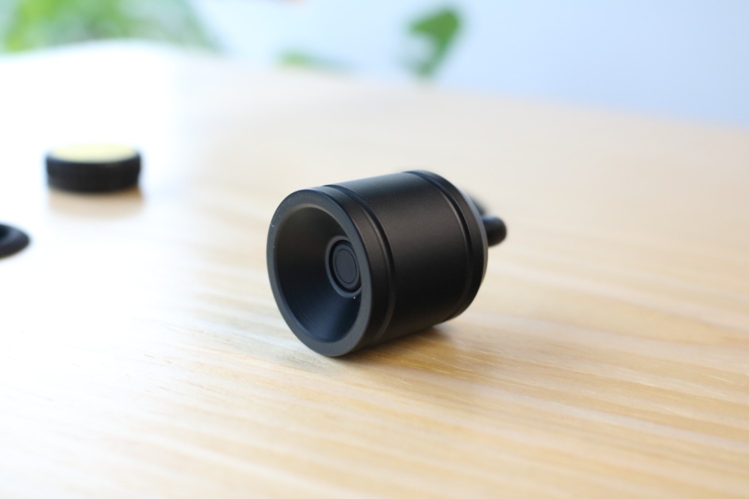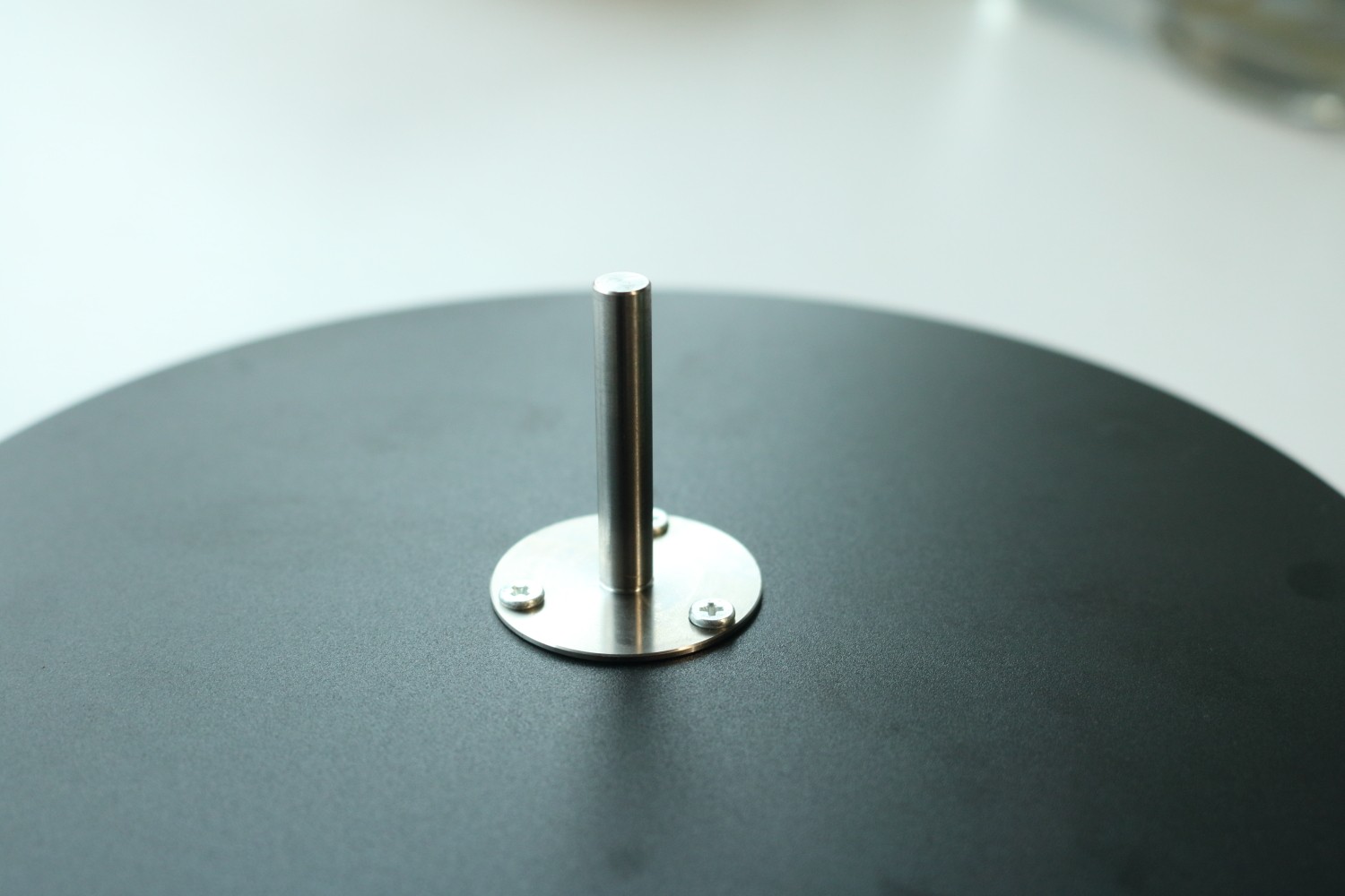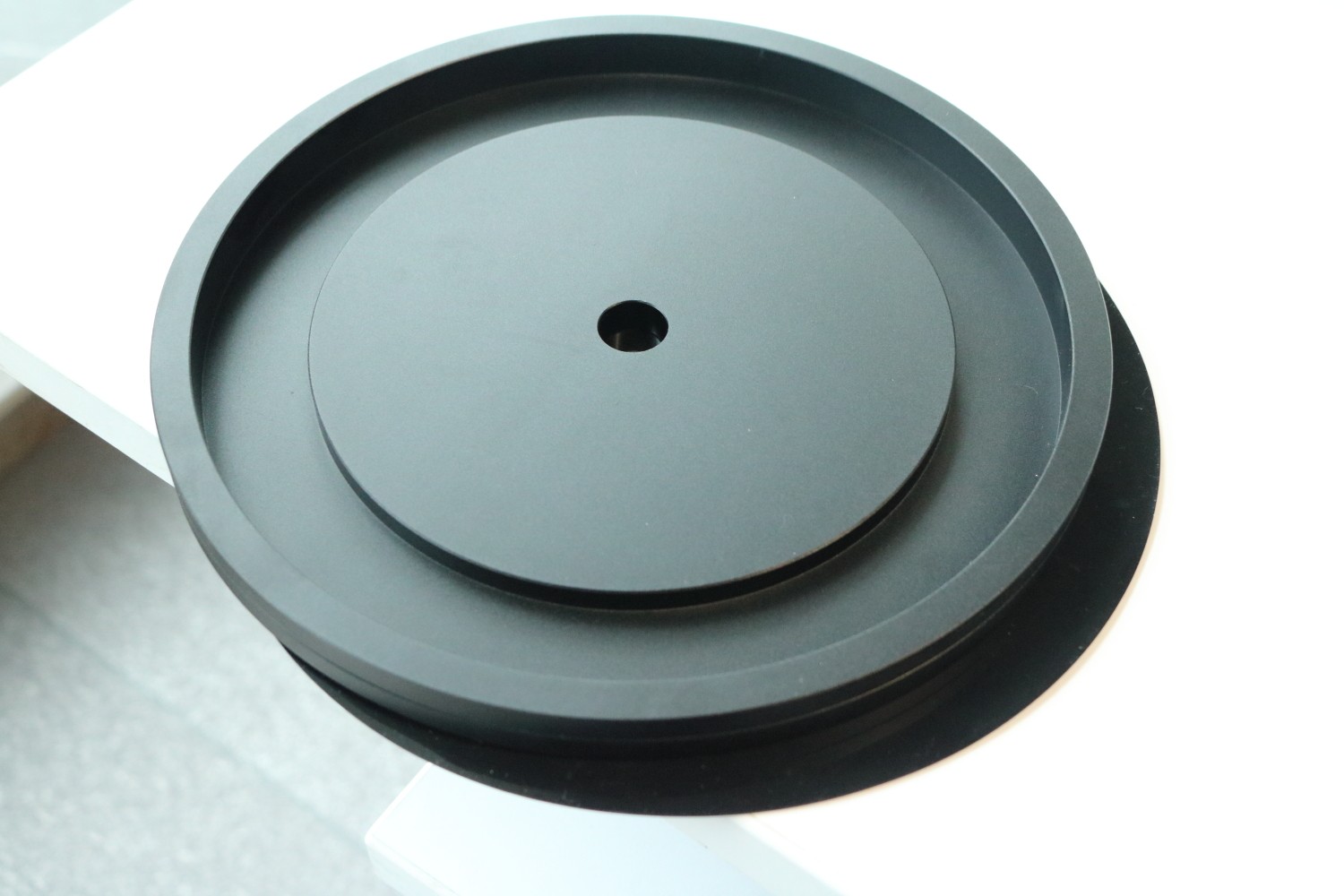 首先拿出来的是唱片的转盘,是拖住唱片旋转的,全金属的材质,实心的很重,有点像生铁,最薄处的厚度也足足有0.5cm。