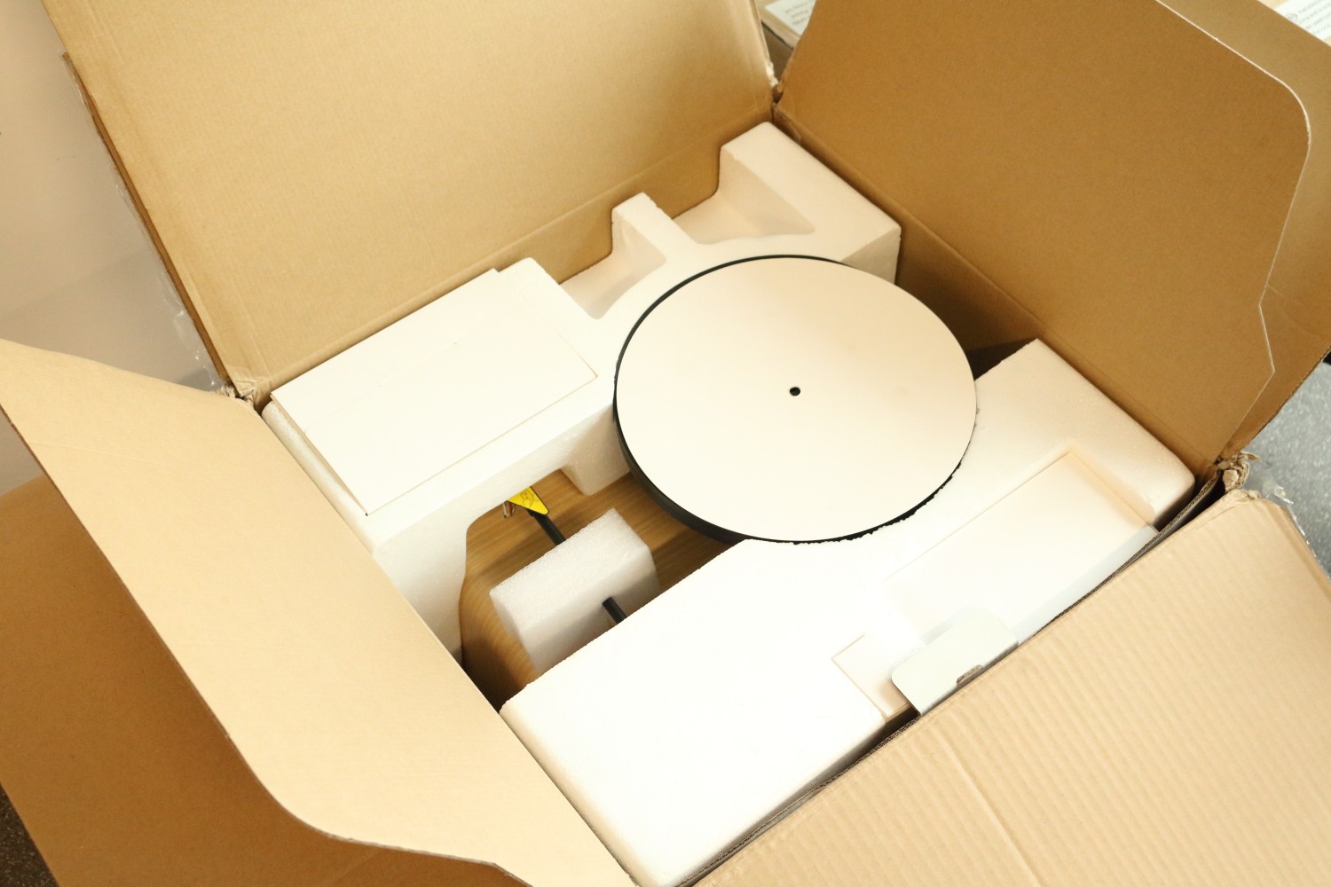 验完了唱片,我就正式看一下这台国外十分火热的HYM-Seed黑胶智能音响。打开包装箱,两边用泡沫盒顶住,保护的结结实实,各种配件把整个空间塞得满满当当,而且机子非常沉,搬出来需要费点力气。