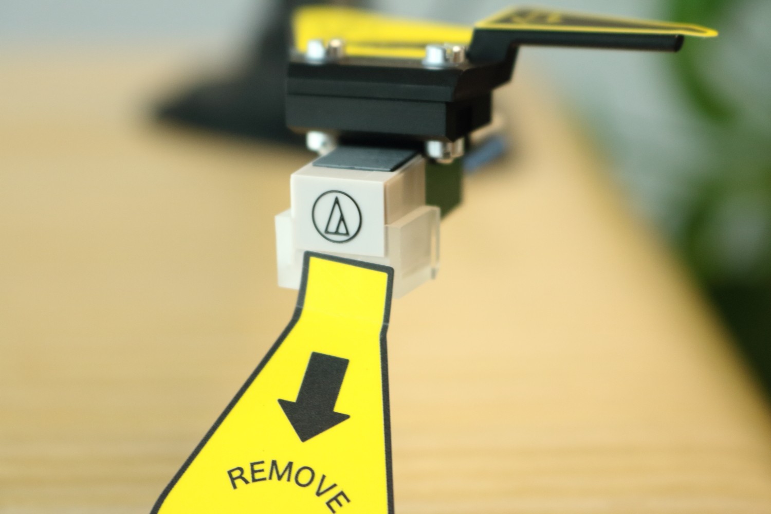 都拿出来后就是这样,没有加唱盘。包括唱臂在内的各个关键部位都贴着说明标签,黄色的很显眼。