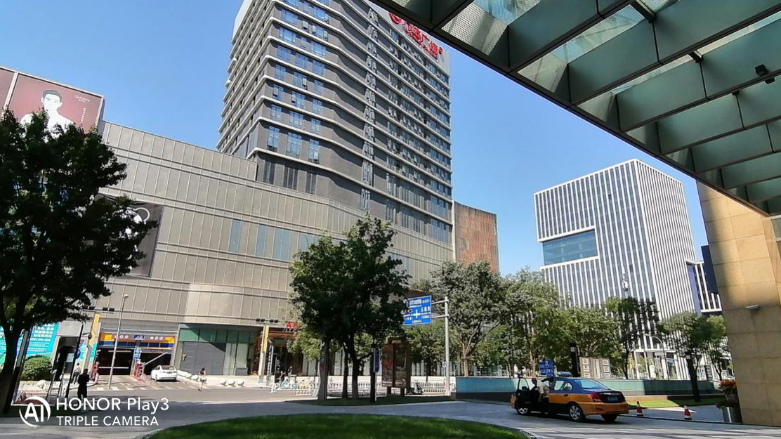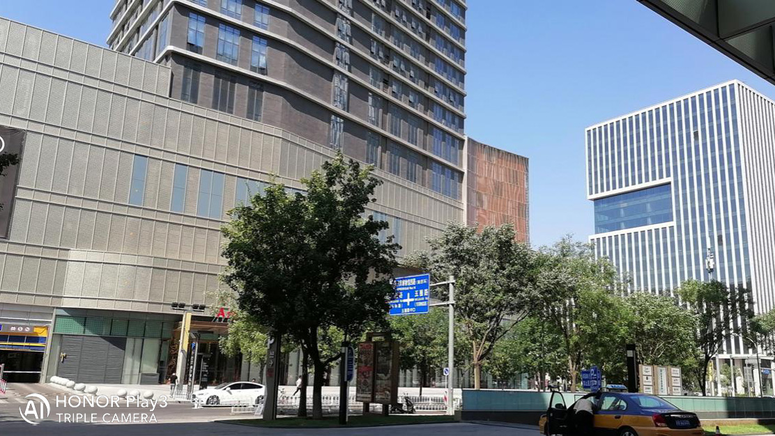 可以看到,荣耀Play3超广角拍摄的画面取景范围比正常焦段要广不少,路面和树木都可以容纳进来;且荣耀Play3画面细节一样清晰,再加上轻微的广角畸变,画面冲击力更强,体现风景的空间感。