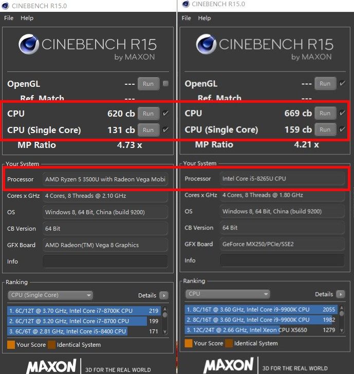 那么,究竟为什么会有差呢?选择英特尔的又会带来哪些体验上的提升呢?我们不妨也拿他买到的笔记本的处理器和同等级的英特尔处理器进行比较比较。