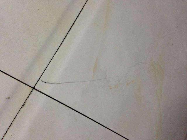 取一些封马桶用的玻璃胶填补缝隙也是可以掩盖住裂痕的。不过需要注意的是,周围的胶质要清理干净,这一点对工人的手法有一定要求。