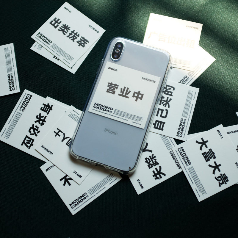 原厂出售的手机标配透明手机壳,大概是我们手机的首件外衣吧,当初嫌弃它丑的人,现在稍微加上点汉字图案,立马华丽大变身,从普通大众变成文艺清新风~