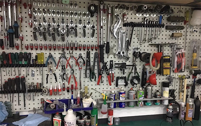 洞洞板收纳的方式其实很多维修车间、工厂、五金店都在使用,它的方法是直接将洞洞板挂在墙壁之上,表面拥有多个挂钩,将五金工具依次排列挂在其上即可。不仅不会占用地面空间,如果你的五金工具不多,还能起到装饰墙壁的作用。