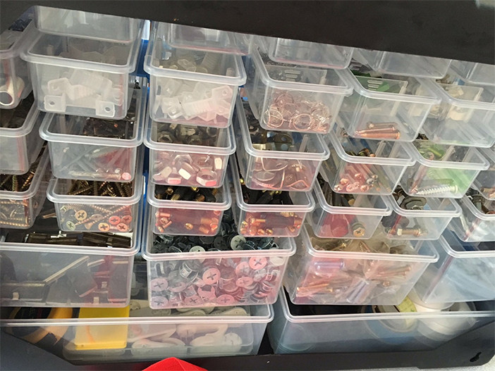 PVC塑料收纳盒也不少见,我们常去的五金市场中,就有很多商家是使用的这种。但如果将其运用在家中进行五金工具的收纳,小编认为着实不太妥当。毕竟它占用的空间面积过大,如果不够还需再加,这样一来,房屋面积就只仅仅为了工具收纳而变小,得不偿失。