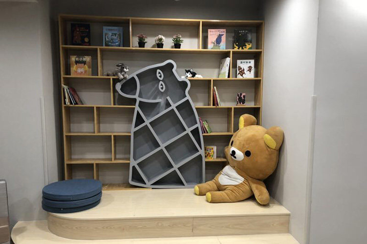 谁规定书架就要方方正正的?不,书架玩起脑洞来也是分分钟惊艳你哦。加入小熊造型的书架,展现出更加逼真的卡通形象,为家具带来生命力,传递给人们一种熟悉又梦幻的童话世界既视感。孩子们犹如到了动物王国一般,享受无尽的乐趣,在玩耍的过程中学习,让童年更加单纯而快乐;科学合理的分区设计,将每一处空间运用到极致,使图书能更井然有序的安放,给孩子营造出一个整洁快乐的阅读环境。