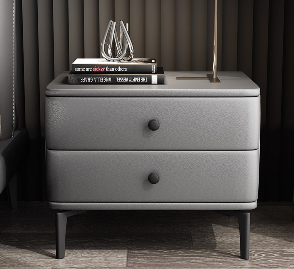 接下来介绍的这款简约风的抽屉,使用的是俄罗斯进口的松木,无甲醛,无异味,还有一股天然的木香味。外部采用优质的超纤皮,光滑细腻,清理起来非常方便,十分耐用。柜子底部的黑色磨砂五金脚,稳固性强,看起来也非常地有质感。