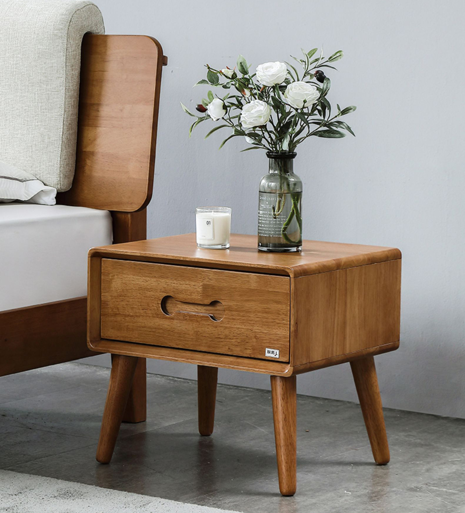1.实木北欧床头柜