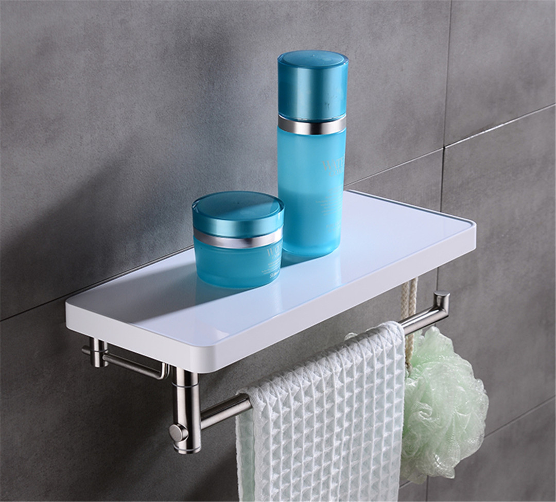 卫浴间的收纳很重要,毕竟爱美的女性有太多瓶瓶罐罐需要摆放,因此一款合适的置物架就能派上大用场。出色的这款置物架采用免打孔设计,只需涂抹上粘合剂就能牢牢的固定在前面上,不用打孔破坏原来的额墙面,实用性大大提高。