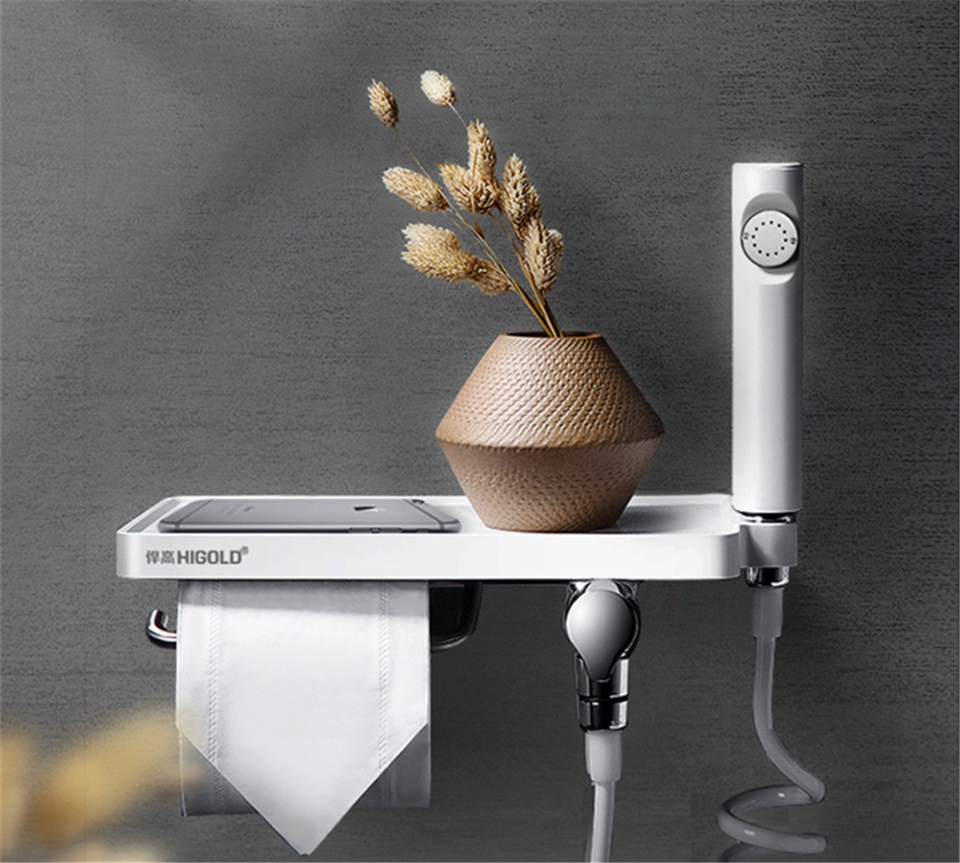 三通角阀采用一进双出方案,双控不分左右,方便实用。创意纸巾架,简洁大方更换方便,还带有隐藏式设计,可防止磕碰。增压式喷枪,水流强劲,带有3米延长线,可以轻松冲洗卫生间各个角落。