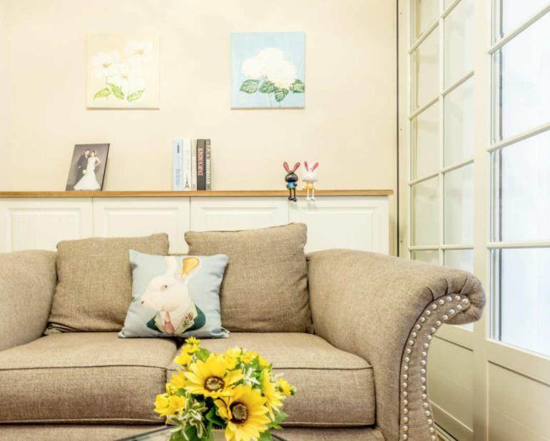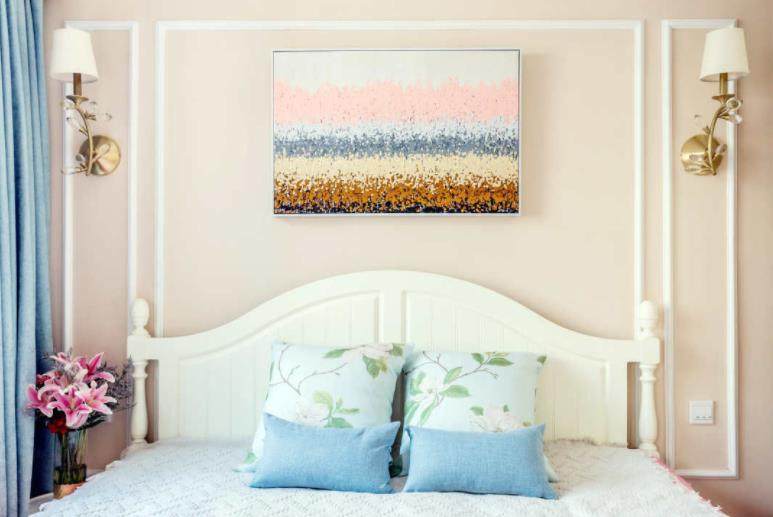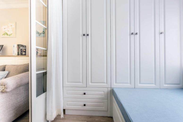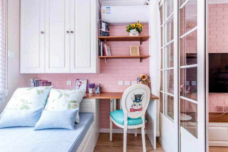 卧室的面积也不大,换上暖色调的墙布,看起来温馨且还显得高档。田园式的小床也是塔塔精挑细选的,1.5米大小也正好。