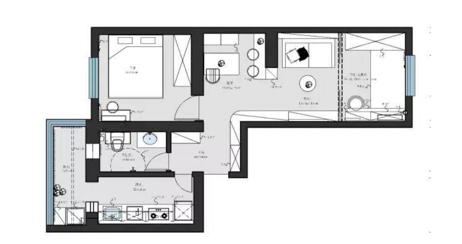 这是一套偏手枪造型的房子,套内大约50㎡的面积。塔塔在感动之余就开始运用自己的专业知识着手改造了。