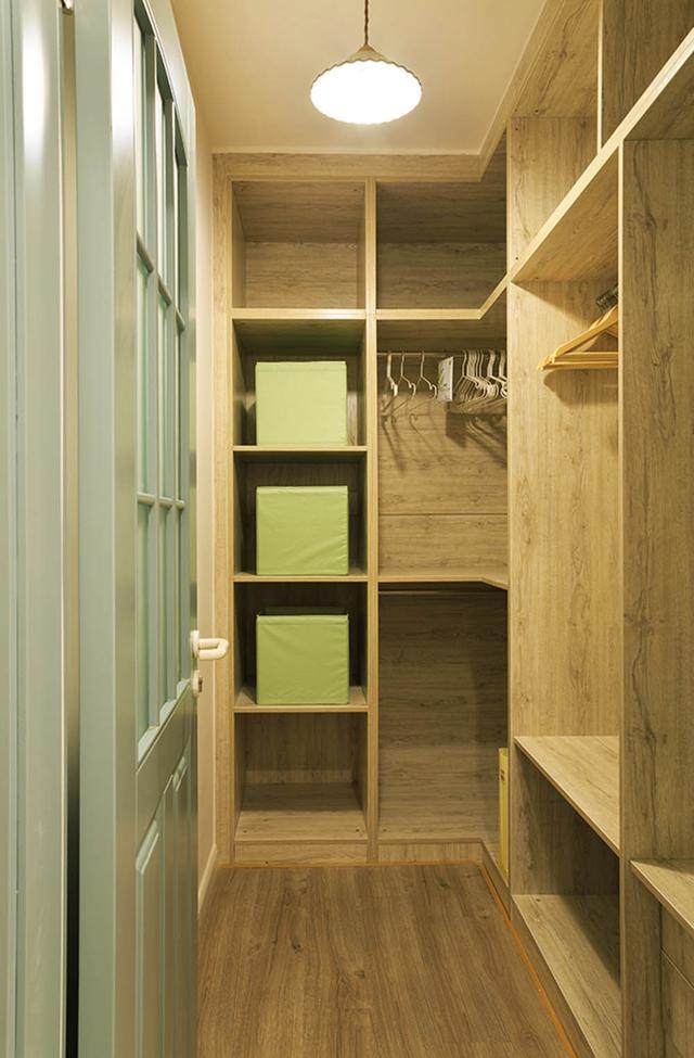 家里储物间用来堆放杂物脏乱又不美观,不妨将这里设计成一个小的衣帽间。其实衣帽间并不需要大的空间,小空间如果设计得好也可以收纳日常的衣物,就像图上这种设计即精巧又整洁。