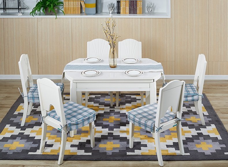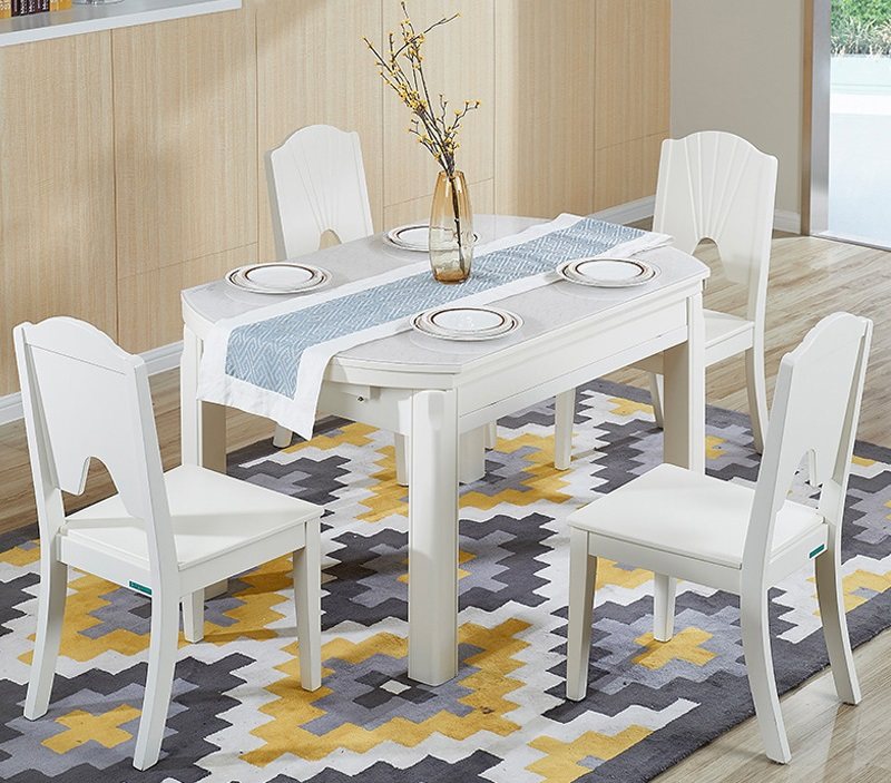 她家的设计是客厅和餐厅一体式的,她希望买一个好看又实用的餐桌,这样既能够招呼客人又不会影响整体屋子里的颜值,所以最近两天一直在拉着我帮她参考到底应该选哪个。挑选了几天以后,我和朋友同时看中了全友家居的这一套白色可折叠餐桌椅。