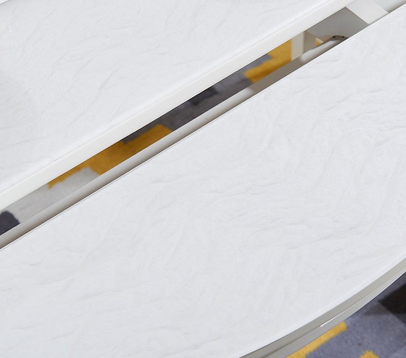 说到细节你们肯定想不到,这个桌子其实是内有乾坤的,大家看两侧的圆弧形,整张桌子完全展开以后,就会由一个长方形桌面变成一个圆形桌面。